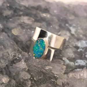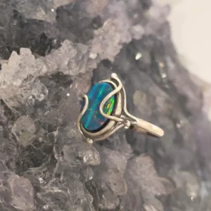 Marquise Aurea Lightning Ridge Doublet Opal 0.05G in 14 Carat Yellow Gold Custom-made Ring Size US 7