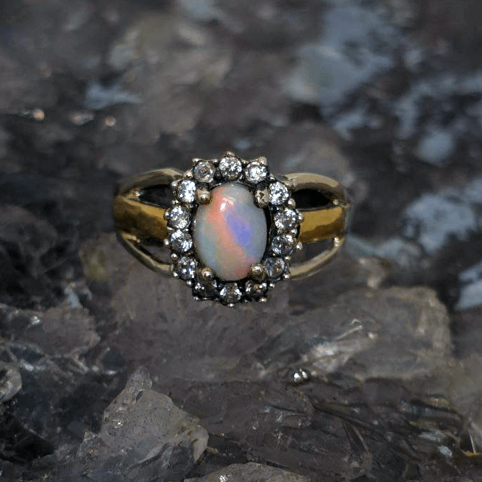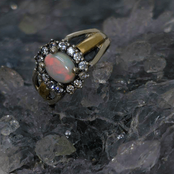 From the untamed earth of Lightning Ridge, Australia’s famed opal cradle, comes a gem unlike any other. Avra Sorali holds within it a full spectrum of light—an entire storm of colour captured in a single stone. With a 1.00ct solid dark opal glowing in N6 bodytone and B3 brightness, this ring carries the wild, elemental energy of the place where it was born—crafted not for adornment alone, but to become part of the wearer’s essence. Set in a union of polished 925 Sterling Silver and radiant 9ct gold, Avra Sorali rests against the skin like a secret, waiting to be revealed. The opal’s high dome reveals dancing flashes of blue, green, orange, gold, pink, red, and purple—colours that shift as the hand moves, alive with expression.