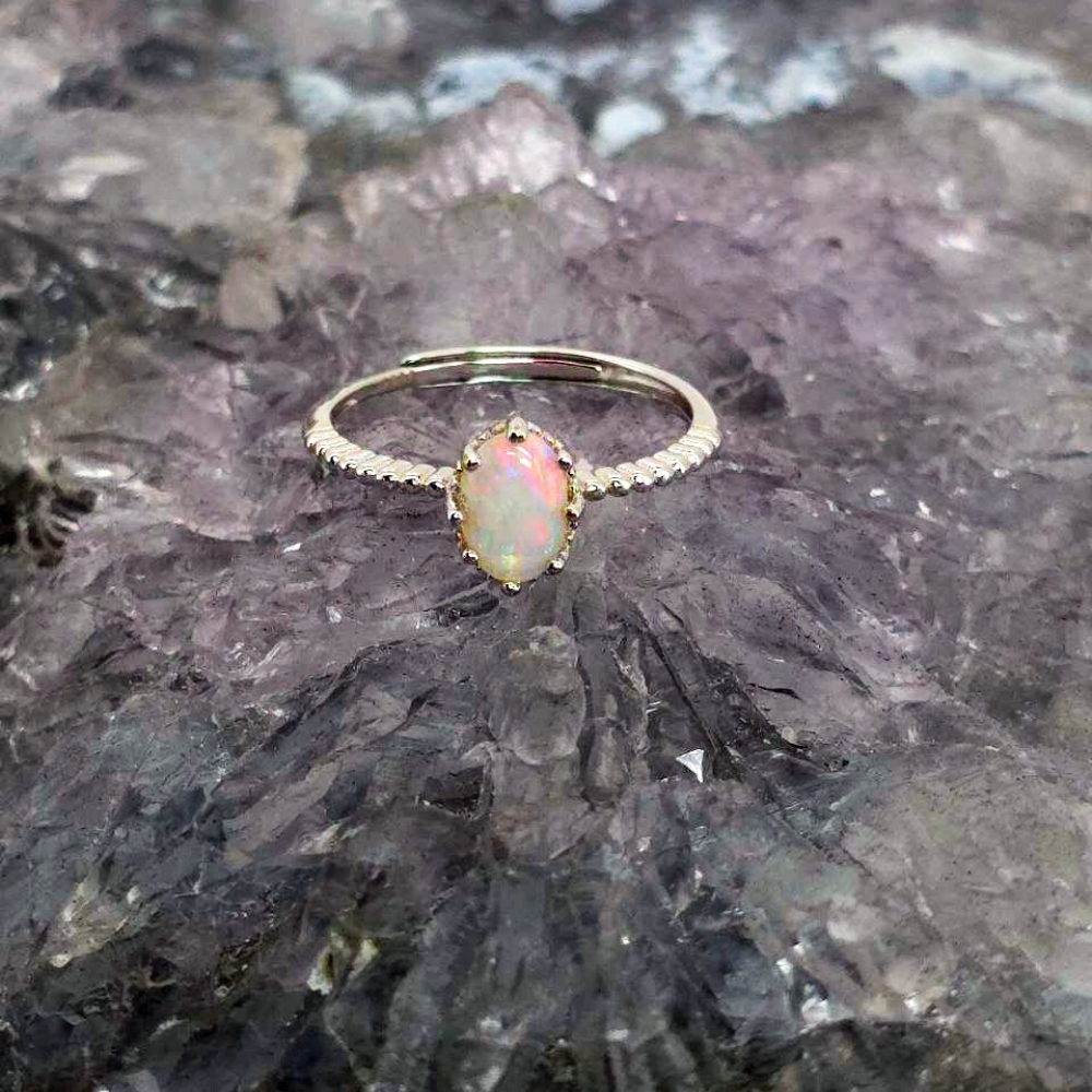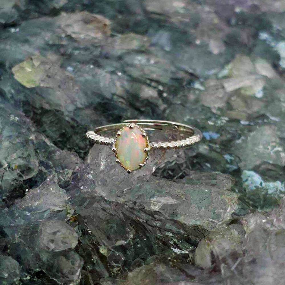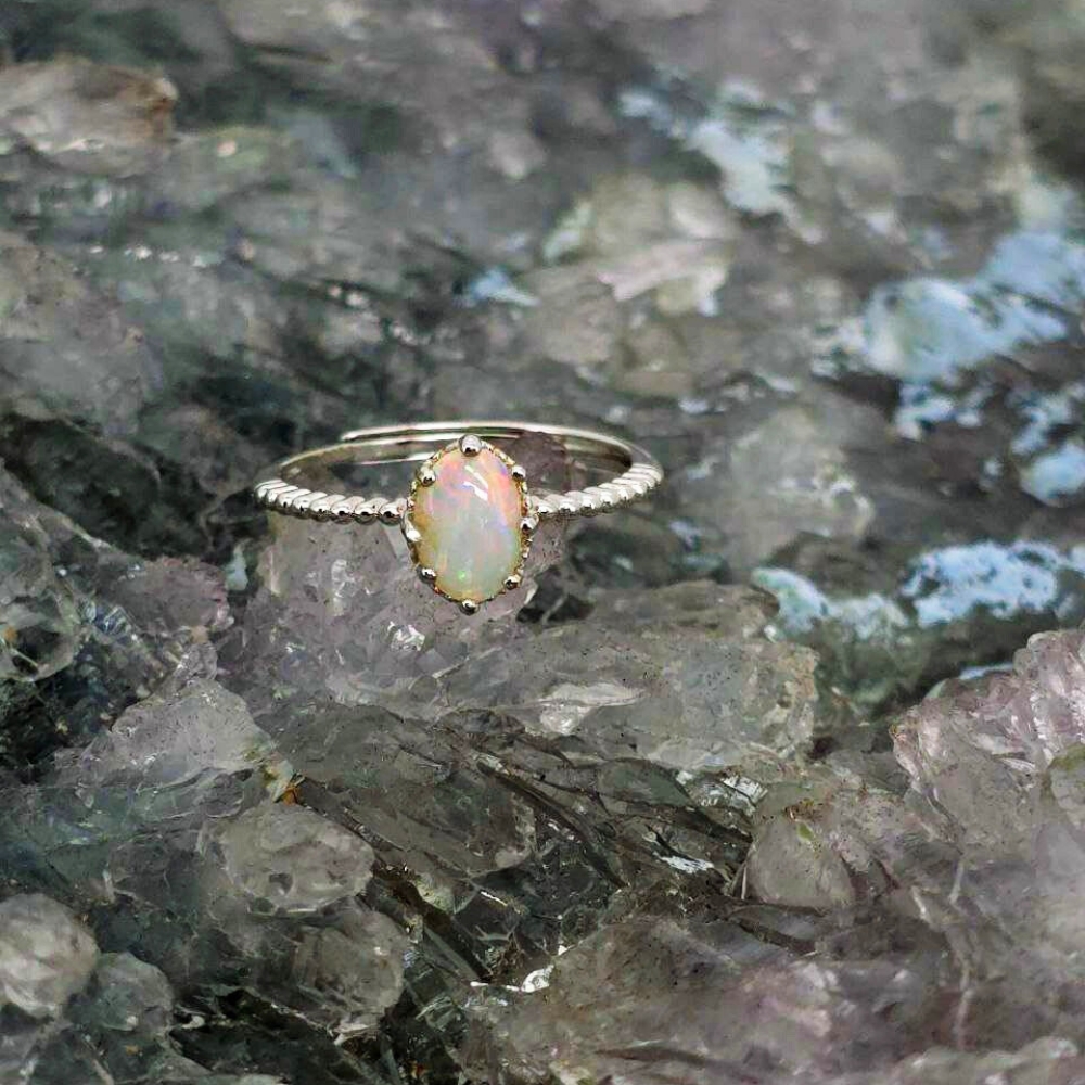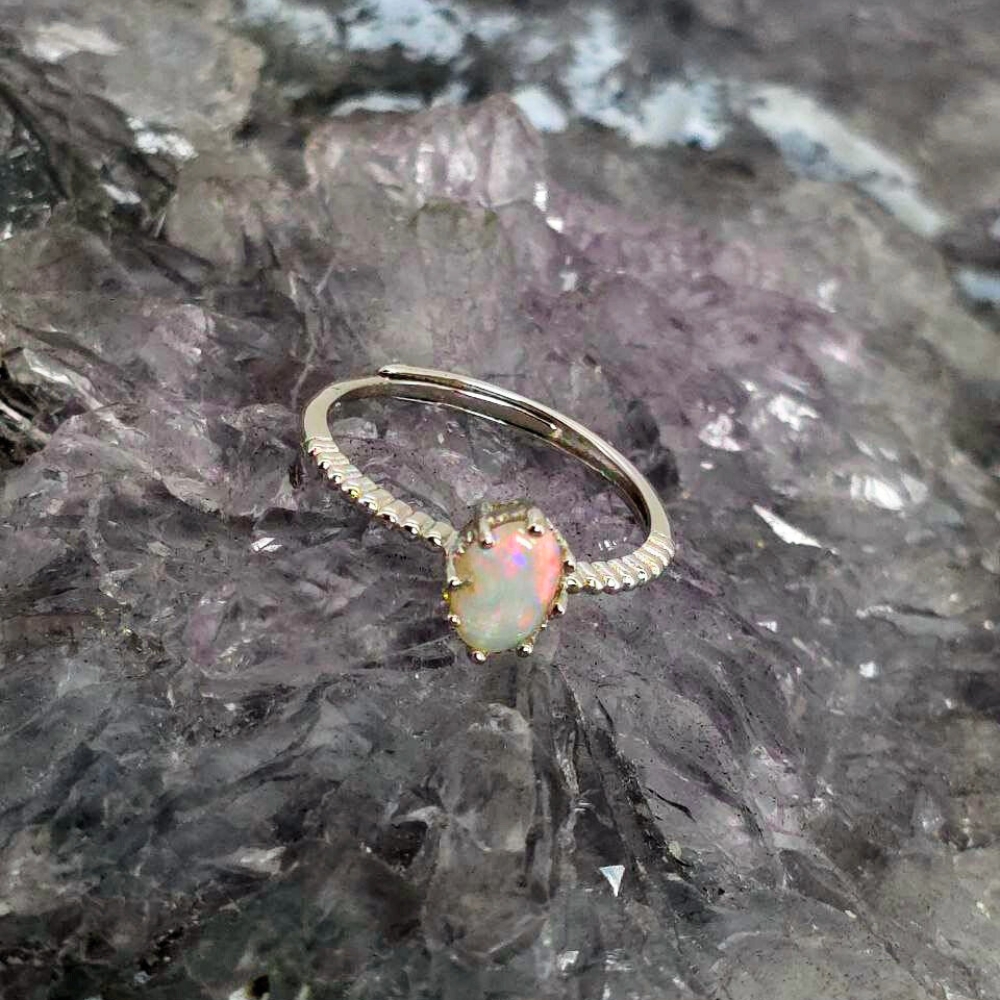 She calls without words. You follow without knowing why. The Elusive Siren ring is a tribute to the woman who carries mystery like silk and strength like the tide — magnetic, unknowable, unforgettable. She is the story you can never quite finish, the song that lingers long after the music fades. At the heart of this piece lies a Lightning Ridge Crystal Opal, 0.65ct, oval-cut and alive with shifting hues of blue, green, orange, gold, pink, and red. With an N8 bodytone and B1 brightness, it shimmers like ocean light rippling over secrets too deep to speak. Set in polished S925 Sterling Silver, the adjustable band (US 6.5 / AU M+½) ensures a perfect, fluid fit — echoing the siren’s own effortless grace. This ring doesn’t shout; it hums, glows, whispers — radiant, but never captive to the gaze it draws.