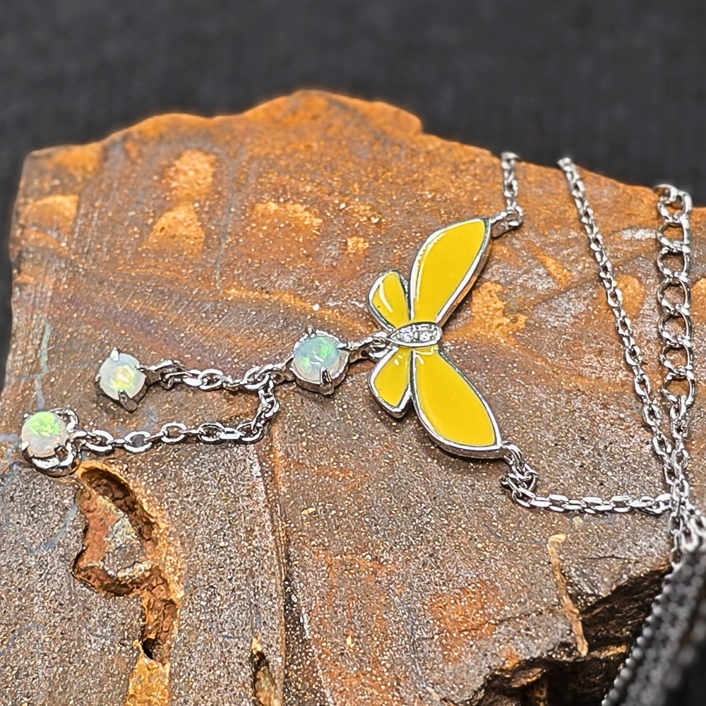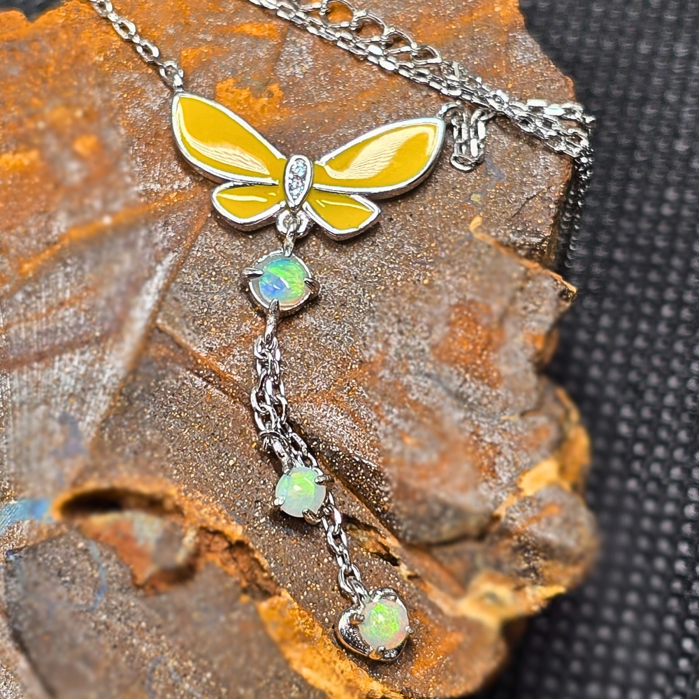 Exquisite Lightning Ridge Crystal Opal 0.60 ct 925 Silver Necklace
