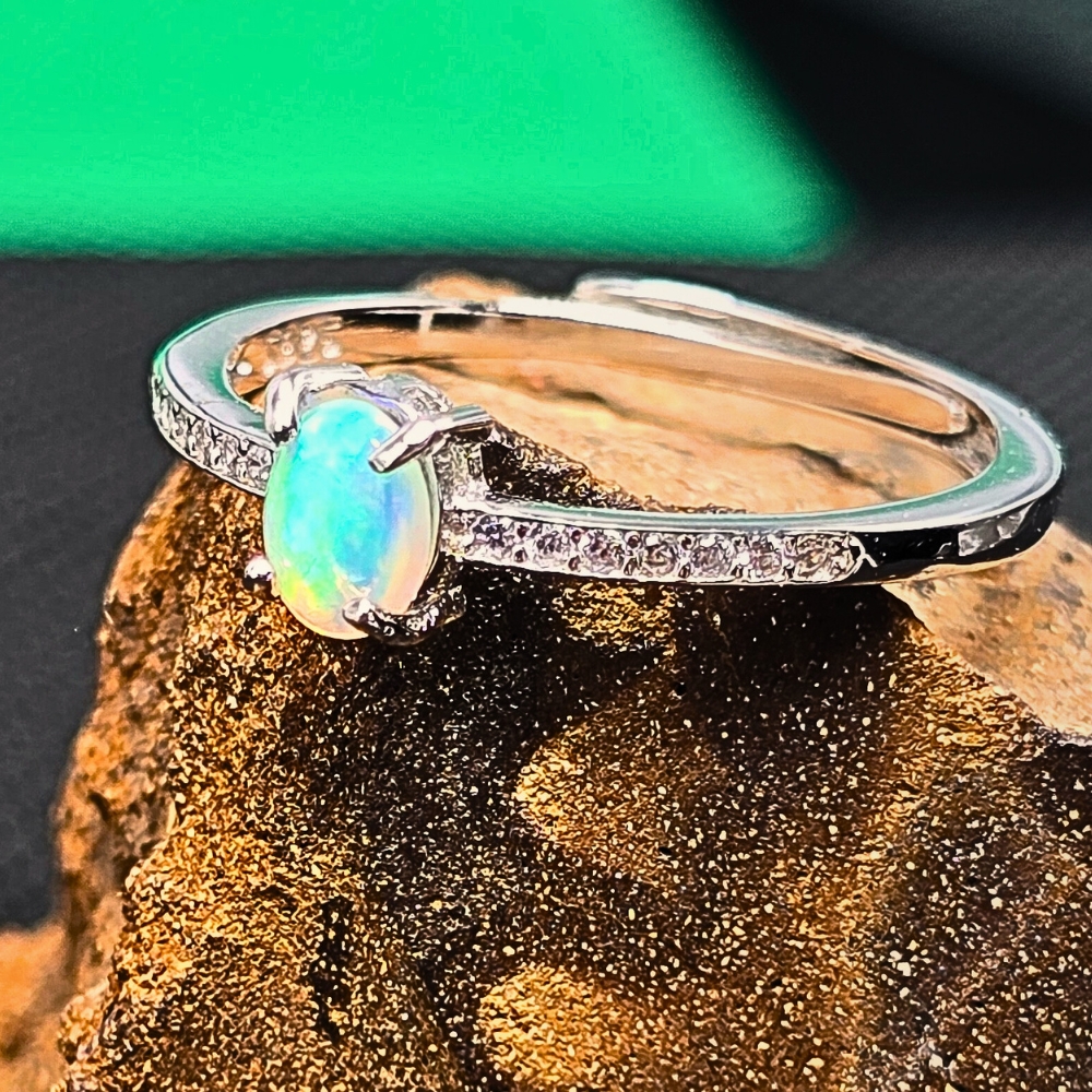 Unveil the mysteries of the cosmos with our Glamorous Lightning Ridge Crystal Opal Ring. This piece captures the ethereal beauty of the Australian outback. With an N7 bodytone and B3 brightness, the opal radiates vibrant green hues. This adjustable ring, sized at 7 US ( AU N1/2 ) crafted in S925 Silver, offers both style and comfort. Elevate your look and add a touch of mystical allure to your collection with this unique statement piece.