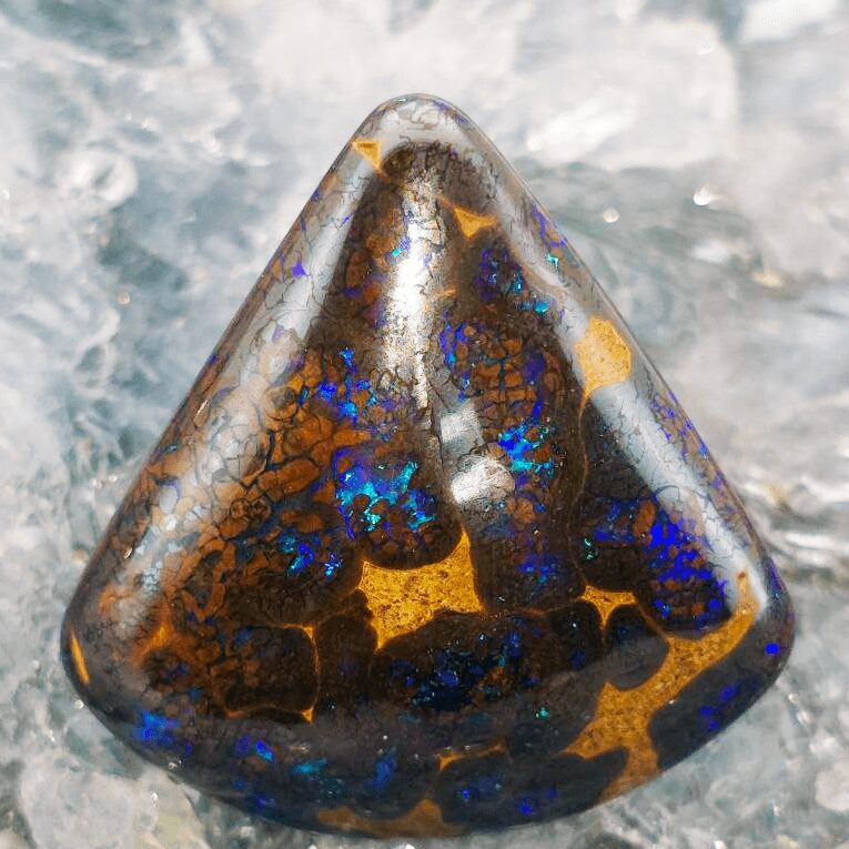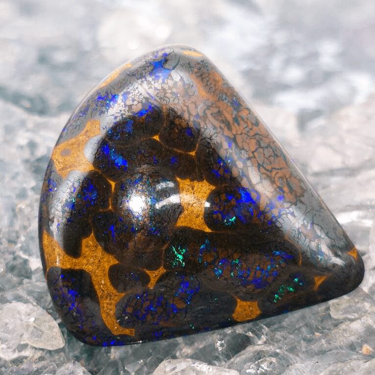 Kahilumora is a stone of twilight and depth—a 59.10 carat boulder opal carved by time from Queensland’s ancient ironstone. Its high dome holds a world of colour, where blues, greens, and purples shift like evening light across water, luminous yet serene. The freeform cut captures both the strength of its rugged host and the softness of its polished surface, a contrast that makes this opal feel alive in the hand. Kahilumora speaks of balance—the meeting of earth and sky, shadow and shimmer. It’s a reminder that in the quietest spaces, light still moves, and that what seems still can hold infinite depth.