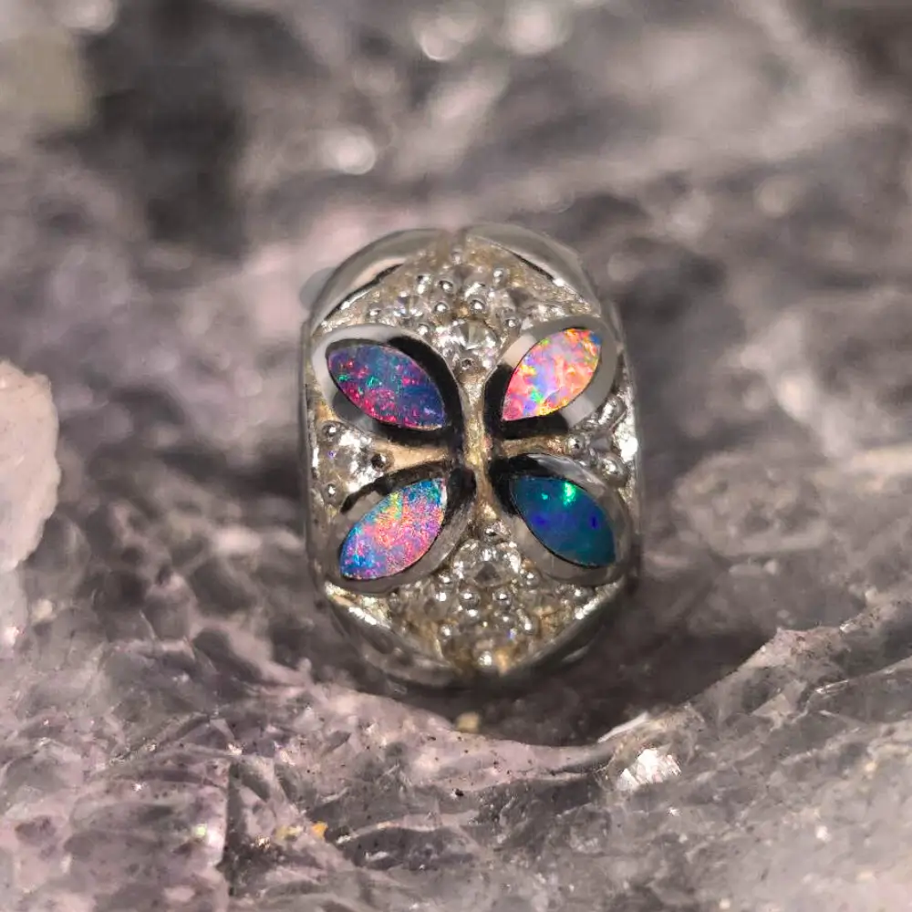 Crafted in polished 925 silver, the charm is designed with a 5 mm hole, perfectly suited for bracelets or necklaces. With a N4 bodytone and B3 brightness, this piece captures the subtle, ethereal glow of crystal opal, balancing understated elegance with a touch of vibrant colour.