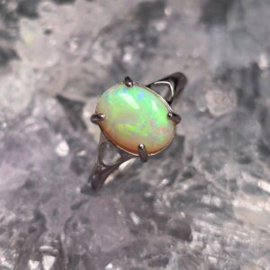 Bespoke Custom-made “Luminara Selene” Ligthning Ridge Crystal Opal 1.20 Ct 925 Silver Ring Size US 7