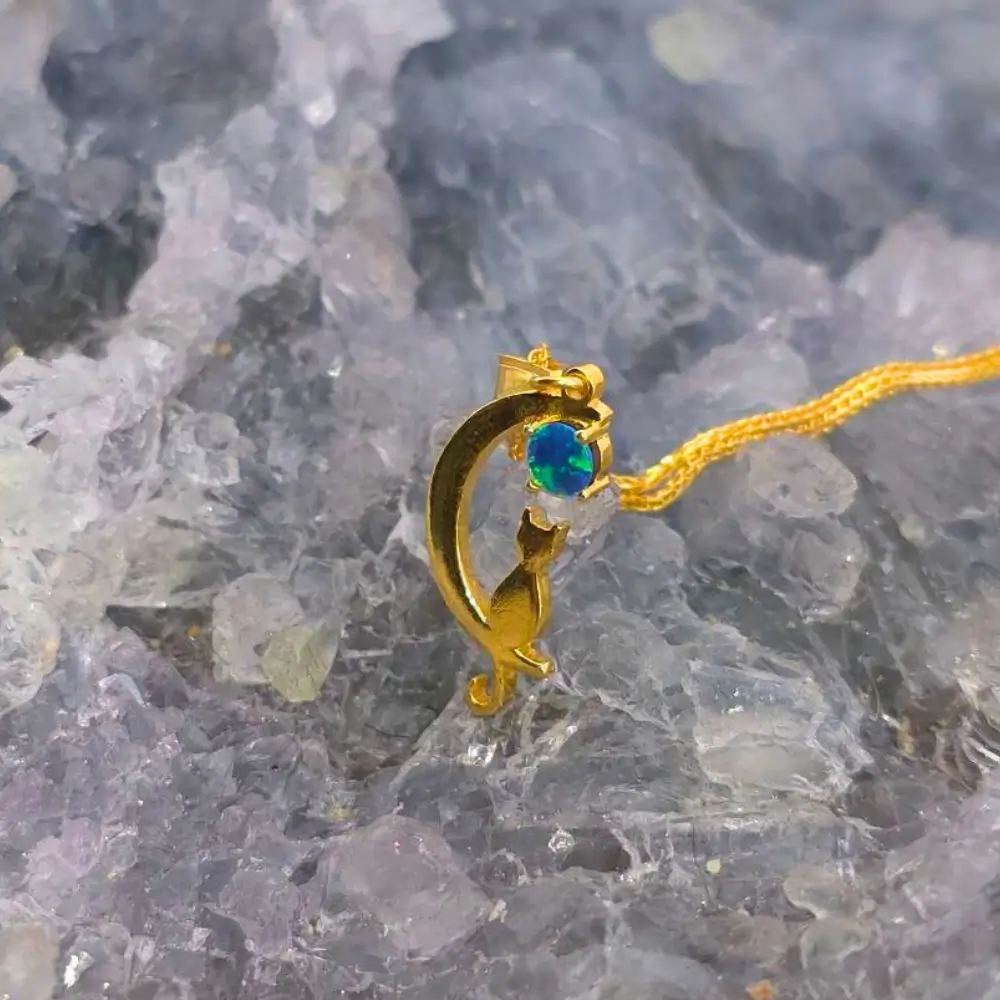 The Luna Lightning Ridge Doublet Opal 0.12g Gold Plated S925 Silver Necklace is a delicate and enchanting piece that radiates elegance and colour. Featuring a 0.12g Doublet Opal from Lightning Ridge with an N3 bodytone and luminous B3 brightness, this necklace showcases a captivating play of blue, green, orange, gold, and purple hues that shimmer beautifully in the light. Suspended from a gold-plated S925 sterling silver chain, the pendant highlights the opal’s natural brilliance while offering a refined and timeless design.