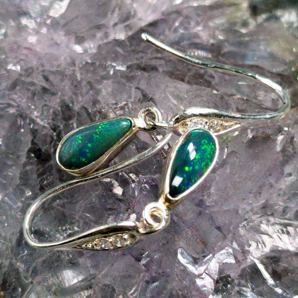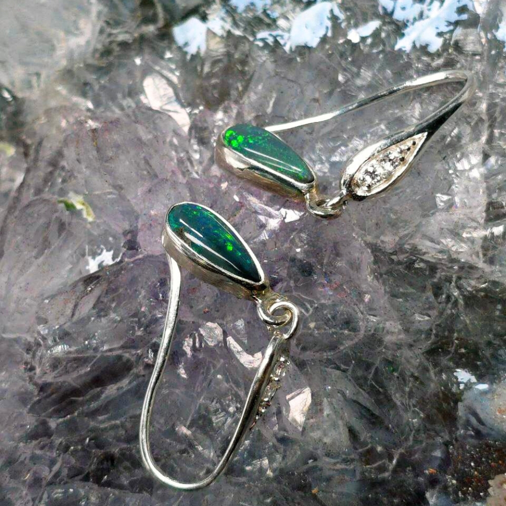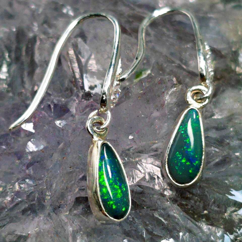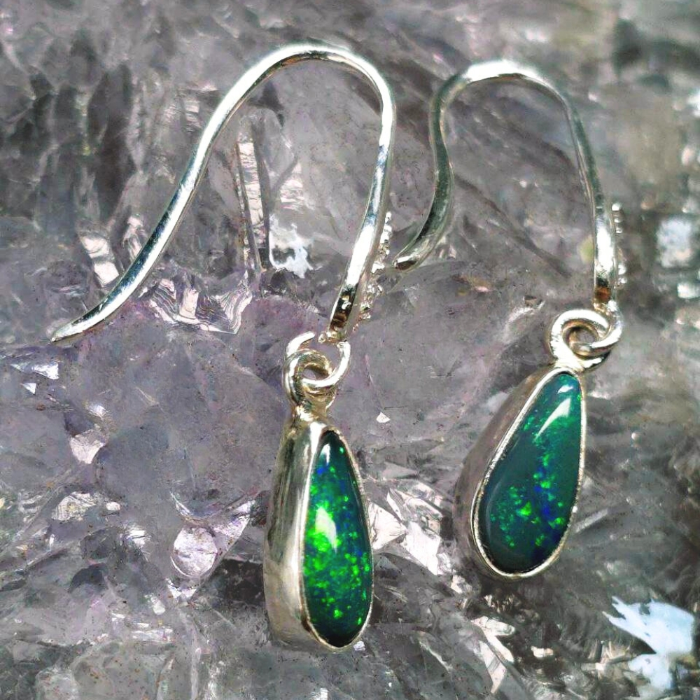 Unveil the mystery of the night with Luna Myst, handcrafted hook earrings that capture the mesmerizing depths of Lightning Ridge Black opals. Each teardrop gleams with flickers of blue, green, gold, and orange—a celestial dance beneath a velvet sky. Featuring 1.20ct Black opals , these earrings display a rich N4 bodytone and lively B3 brightness. Set in polished 925 Sterling Silver, the teardrop design enhances the opals’ natural fire, creating a captivating interplay of colours with every movement. Designed for comfort and elegance, they add a bold yet refined touch to any look. Luna Myst is made for the wearer who embraces both strength and mystery.