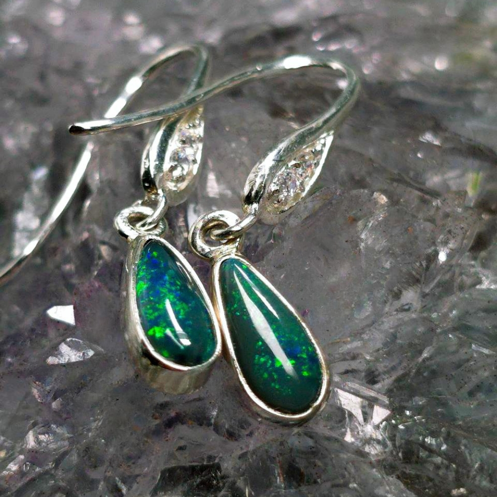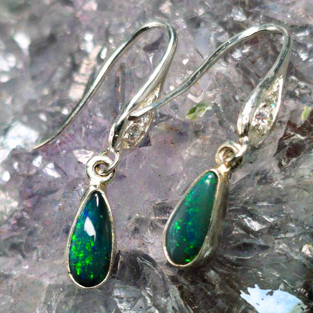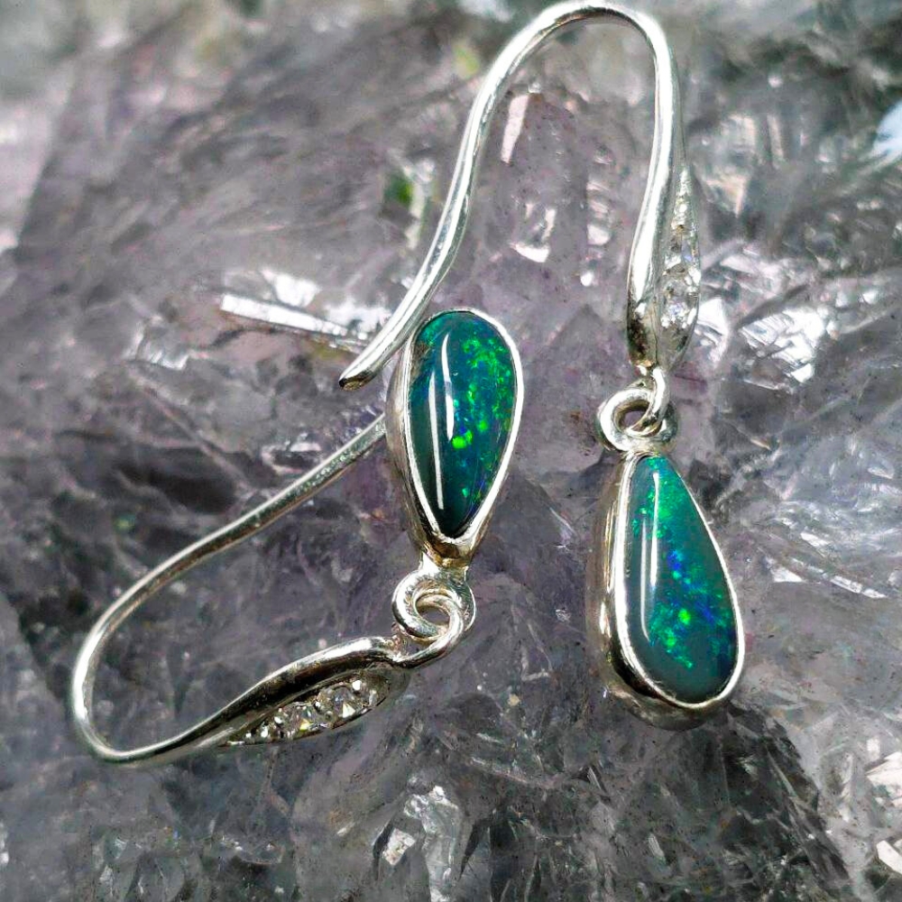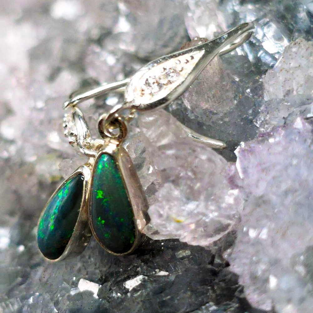 Unveil the mystery of the night with Luna Myst, handcrafted hook earrings that capture the mesmerizing depths of Lightning Ridge Black opals. Each teardrop gleams with flickers of blue, green, gold, and orange—a celestial dance beneath a velvet sky. Featuring 1.20ct Black opals , these earrings display a rich N4 bodytone and lively B3 brightness. Set in polished 925 Sterling Silver, the teardrop design enhances the opals’ natural fire, creating a captivating interplay of colours with every movement. Designed for comfort and elegance, they add a bold yet refined touch to any look. Luna Myst is made for the wearer who embraces both strength and mystery.