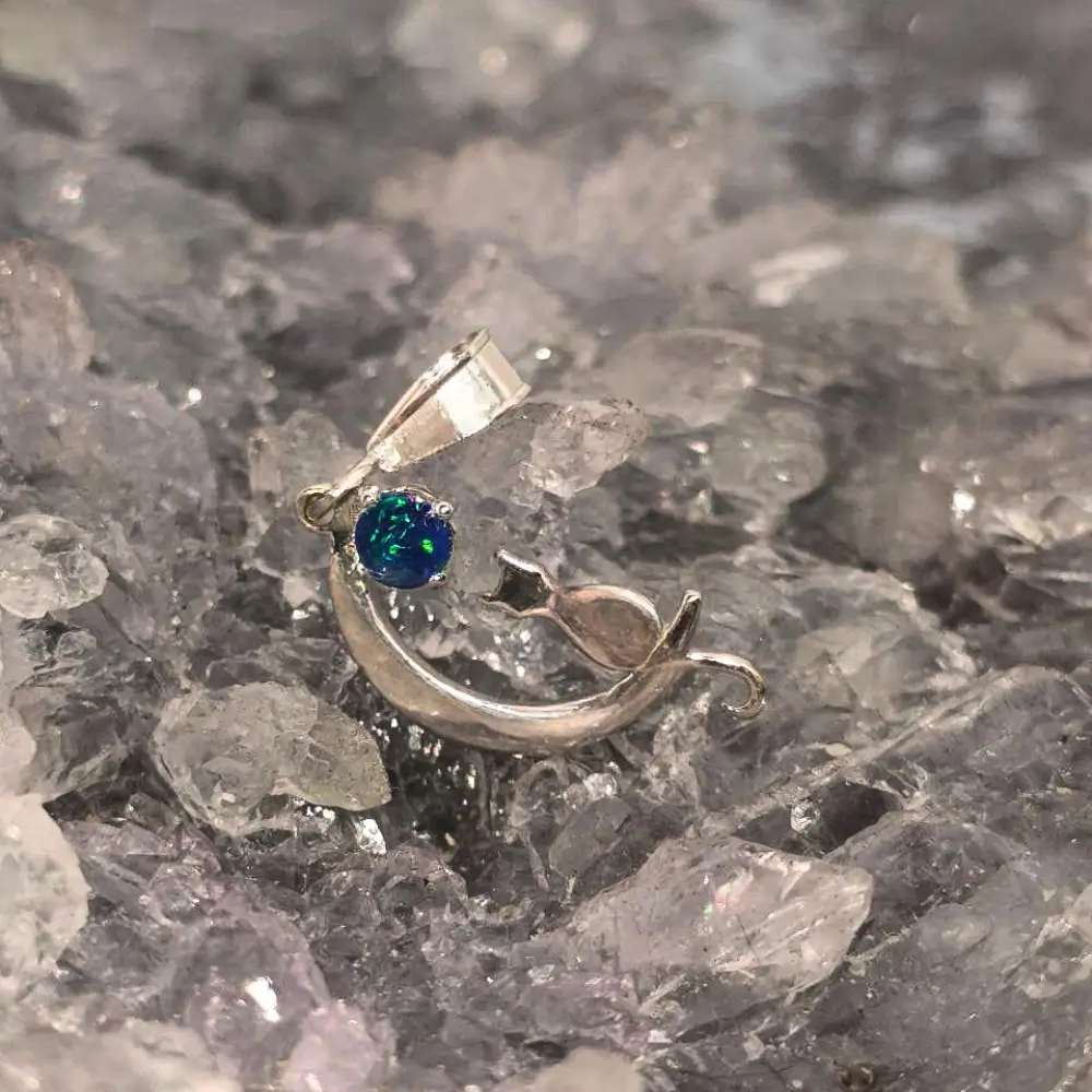 The “Marie” Lightning Ridge Doublet Opal 0.12g S925 Silver Pendant is a charming piece that glows with vibrant elegance. This 0.12g Doublet Opal features a lively spectrum of blue, green, orange, gold, and pink hues set against a warm N4 bodytone, creating a captivating display of colours. With a B3 brightness, the opal sparkles brilliantly, catching the light from every angle.