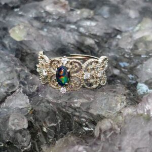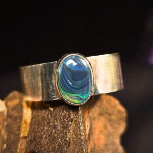 Bespoke Custom-made “Luminara Selene” Ligthning Ridge Crystal Opal 1.20 Ct 925 Silver Ring Size US 7