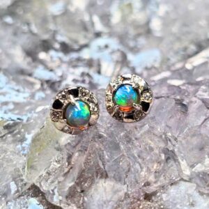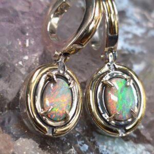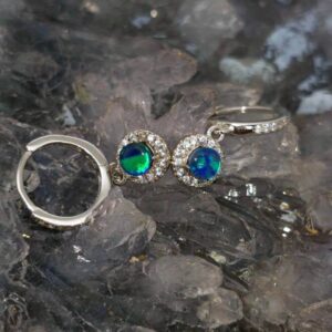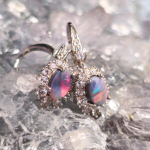 The Ophirae Lightning Ridge Doublet Opal 0.24g S925 Silver Hook Earrings are a stunning expression of elegance and vibrant colours. Each earring features a 0.24g Doublet Opal from Lightning Ridge with a radiant N4 bodytone and brilliant B4 brightness, displaying a captivating play of blue, green, orange, gold, pink, and red hues that dance beautifully in the light. Set in S925 sterling silver hooks, these earrings combine comfort, durability, and sophisticated style, allowing the opals to shine with every movement.