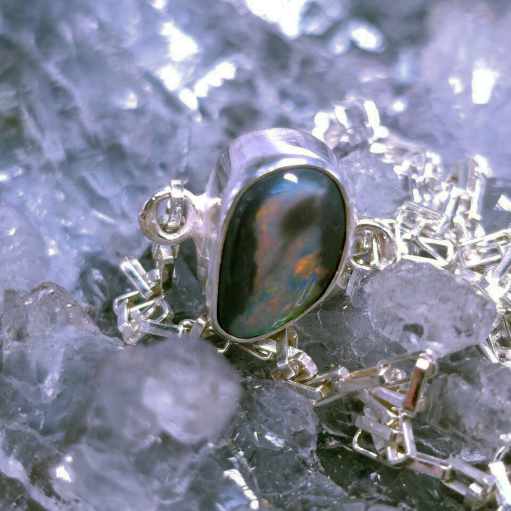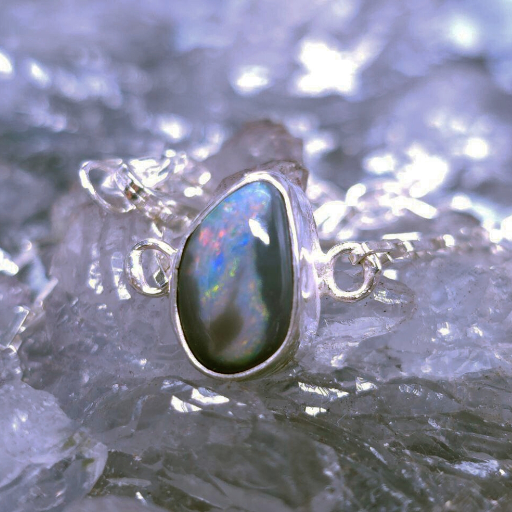 Crafted with care for those who shine with their own light, Orilisse Nocturne is a custom-made, handmade bracelet that speaks to the power of special moments and one-of-a-kind souls. Each freeform black opal is carefully selected from the famed Lightning Ridge mines, hand-polished to reveal its stunning interplay of blue, green, orange, gold, and pink against a dark N3 bodytone. Designed to be as unique as the wearer, this bracelet embraces both the elegance of the stars and the depth of the earth. With an adjustable fit and S925 Sterling Silver, it’s more than just a piece of jewelry; it’s a personal connection, made to be worn on the wrist of someone who deserves the extraordinary.