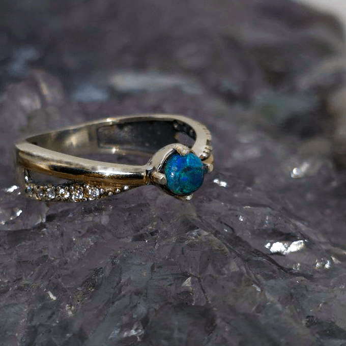 - Accent Stones: CZ, delicately set to add sparkle without distracting from the opal.