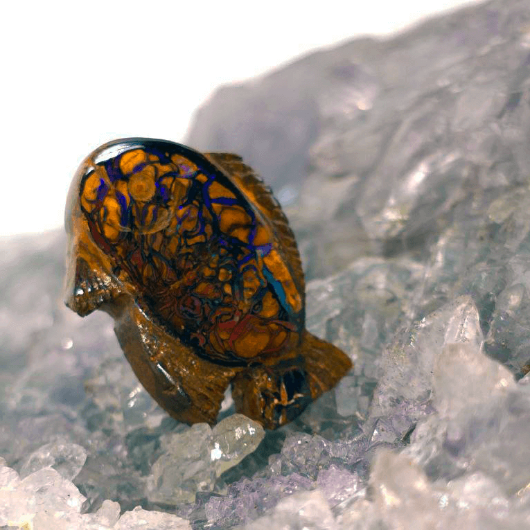 Introducing Saevra, an extraordinary 21.80 ct Queensland Boulder Opal — a fusion of nature’s artistry and luxury. With blue, green, and purple tones shimmering in every angle and B2 brightness that brings it to life, this piece commands attention and admiration.