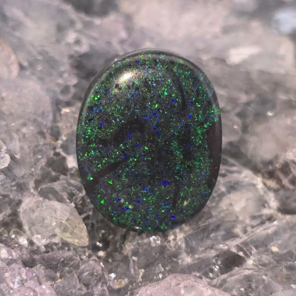 Sylarae is a graceful 16.10 ct Treated Matrix Opal from Andamooka, South Australia, glowing with serene blue and green hues under B3 brightness. Its gentle play of colours mirror ocean light on desert stone, a timeless gem of calm beauty and natural elegance.