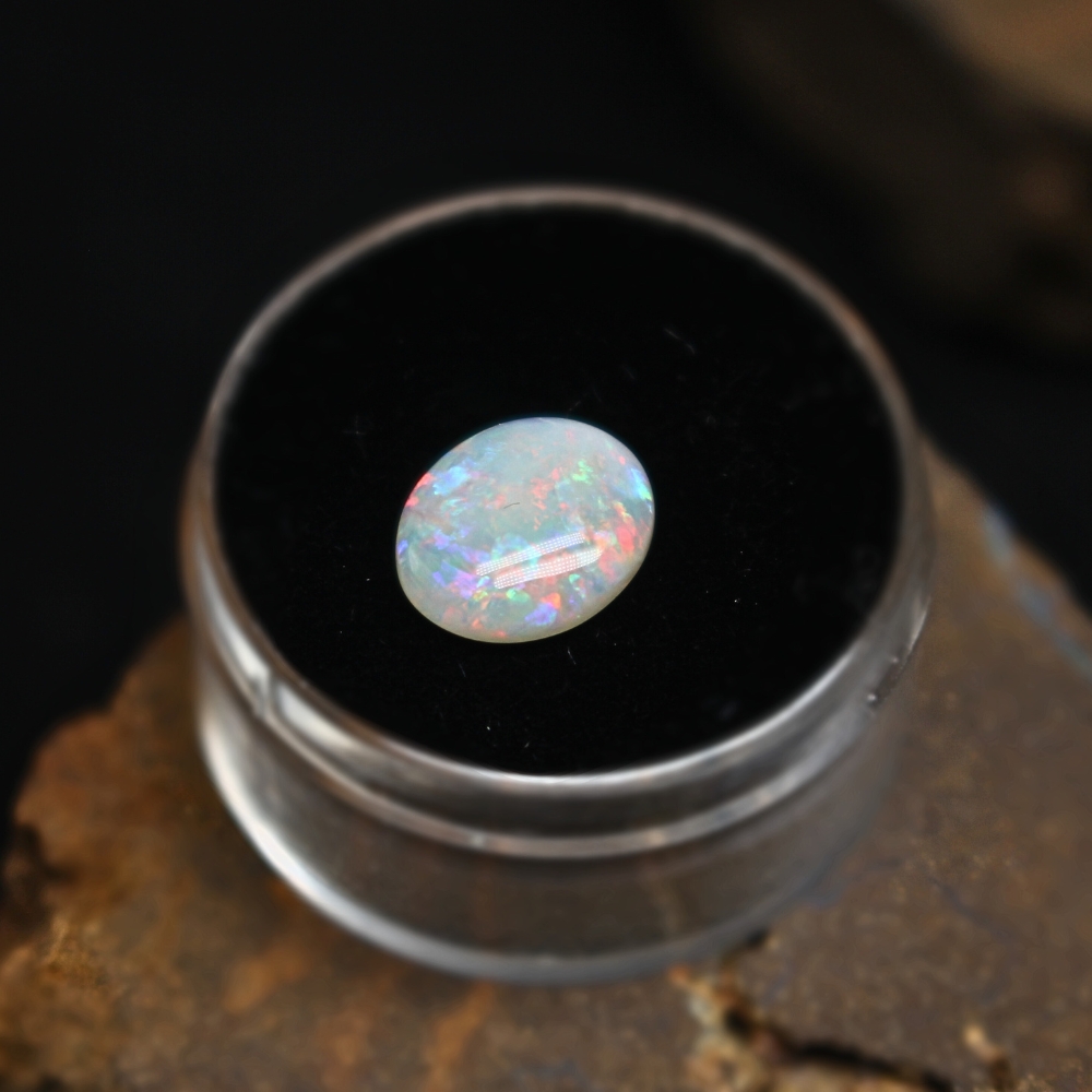 Discover the exquisite allure of the Teasing Coober Pedy Crystal Opal, a gemstone that encapsulates the mystical beauty of the Australian Outback. A precious treasure weighting 1.81 carats, it’s a stunning example of nature’s artistry.