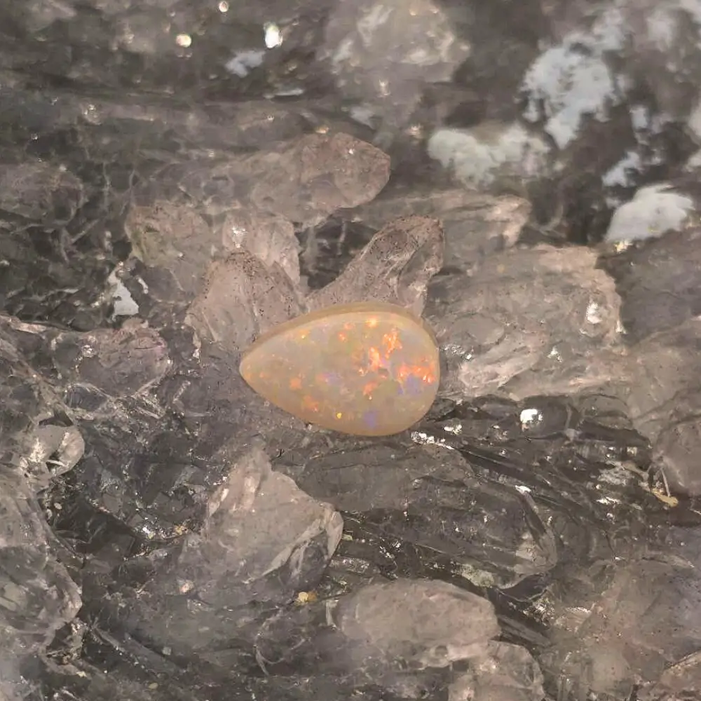 Thaevira — a breathtaking Coober Pedy White Opal ablaze with blue, green, orange, gold, pink, red, and purple hues that shift beautifully in the light. With an N7 bodytone and B3 brightness, this 2.10 ct gem showcases rich depth and vibrant fire, capturing the bold and timeless allure of Australia’s most prized opals.