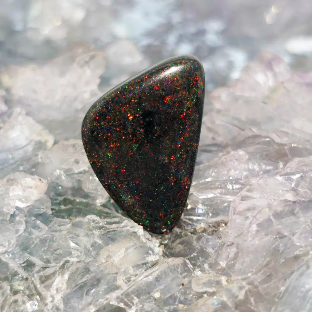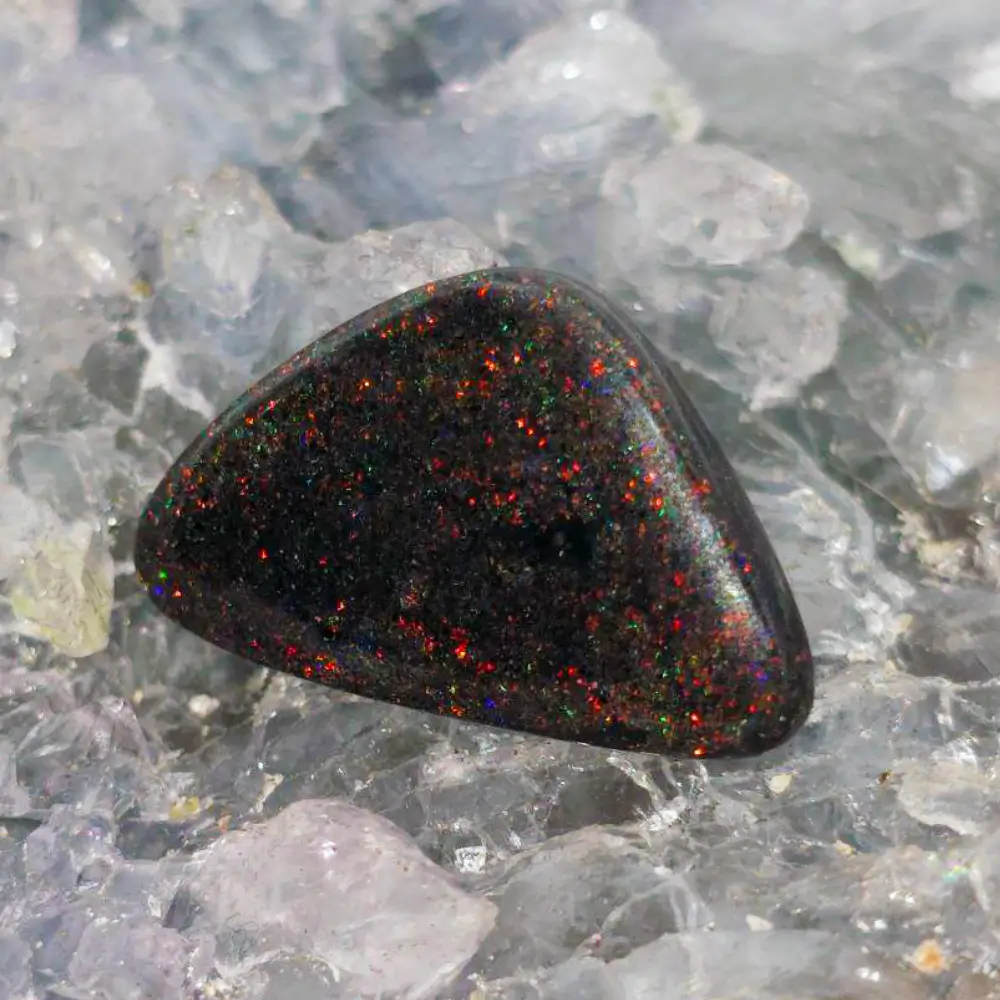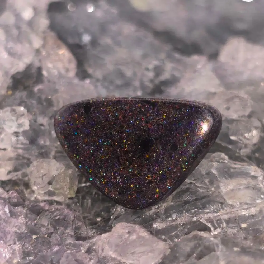 Thalynrae is a magnificent 13.90 ct Treated Matrix Opal from Andamooka, South Australia glowing with blue, green, orange, gold, pink, red, and purple hues under B3 brightness. Its vibrant colour play ripples through the stone like captured fire and desert light, a bold gem of natural beauty and power.
