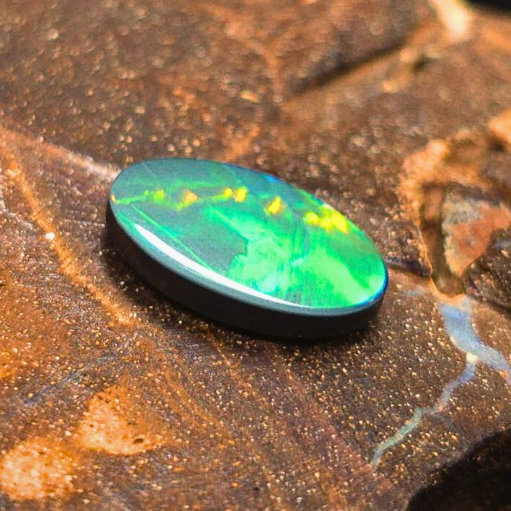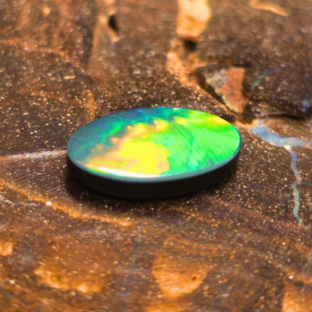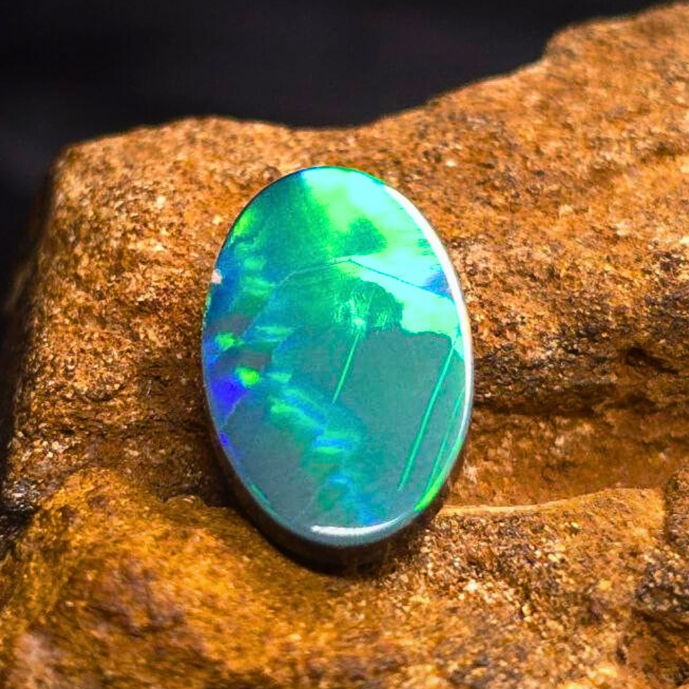 The opal’s expertly polished surface highlights its mesmerizing play-of-colour, creating a vibrant and dynamic appearance that shifts beautifully in different lighting. Perfectly suited for elegant jewelry designs, this doublet opal is a testament to the natural beauty and craftsmanship synonymous with Lightning Ridge, making it a timeless and sophisticated choice for collectors and wearers alike.