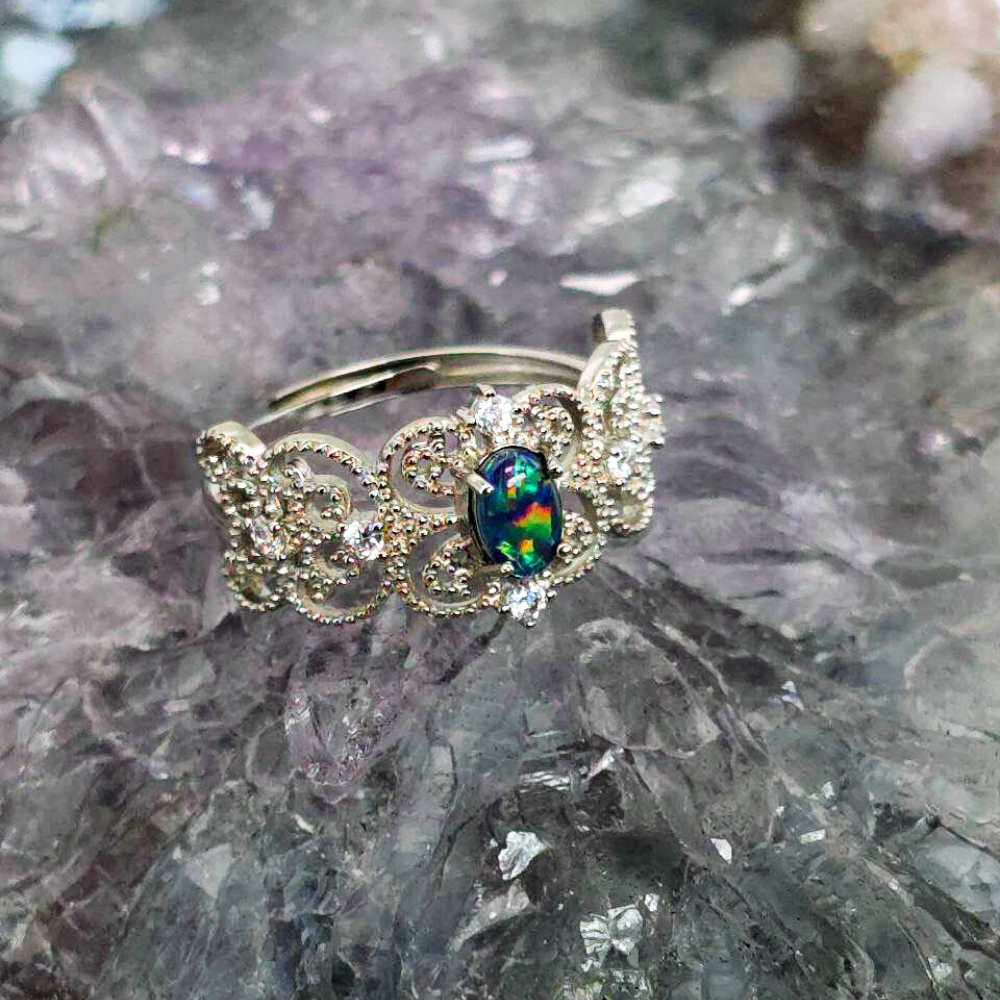 This ring is designed with real life in mind—lightweight, low-profile, and endlessly wearable. The Triplet opal construction enhances not only beauty but durability, making it ideal for everyday moments, spontaneous adventures, or quiet evenings alike.